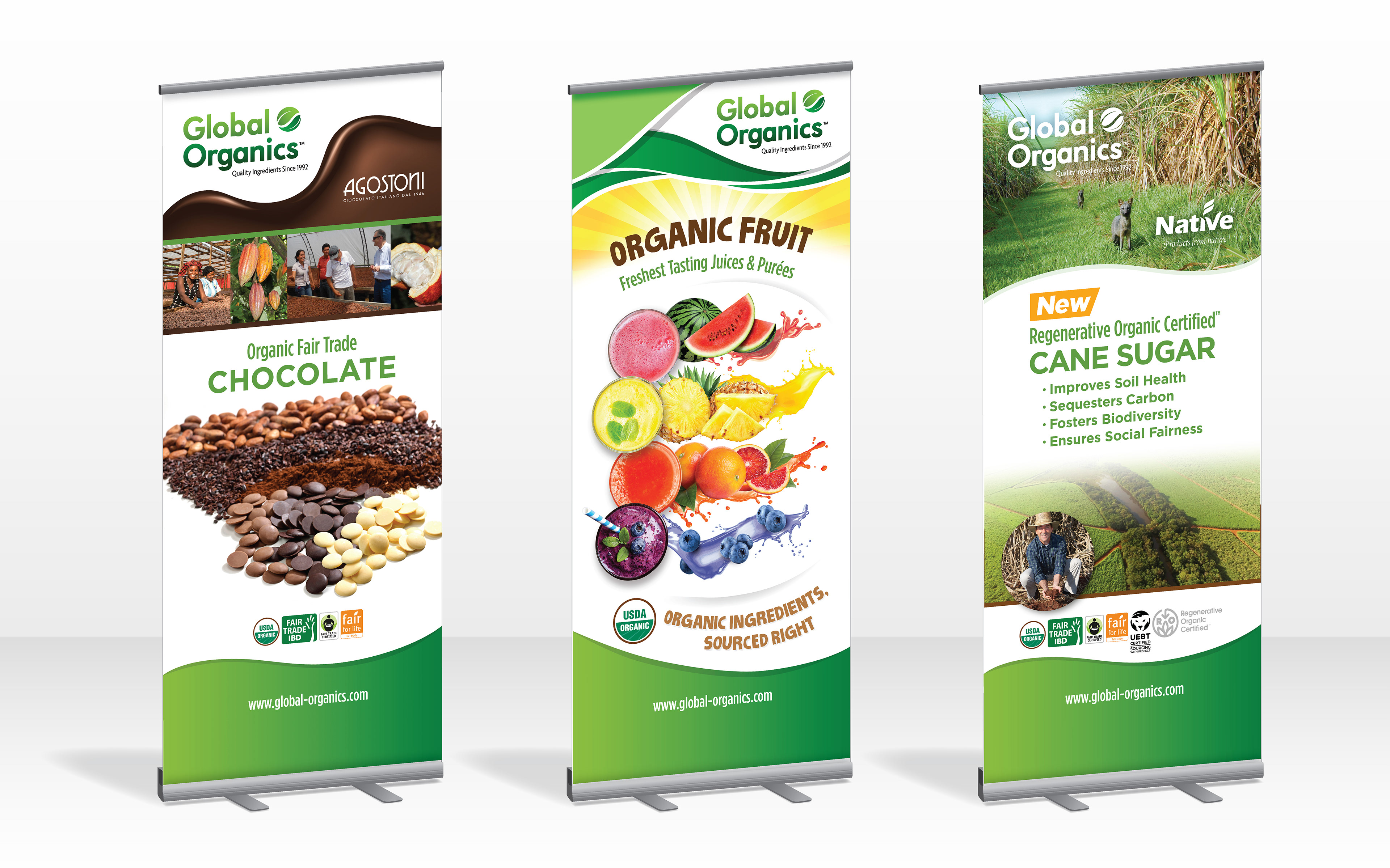 Designed a series of pull-up banners and table covers for Global Organics, a leading supplier of organic food and beverage ingredients for manufacturers and wholesalers.